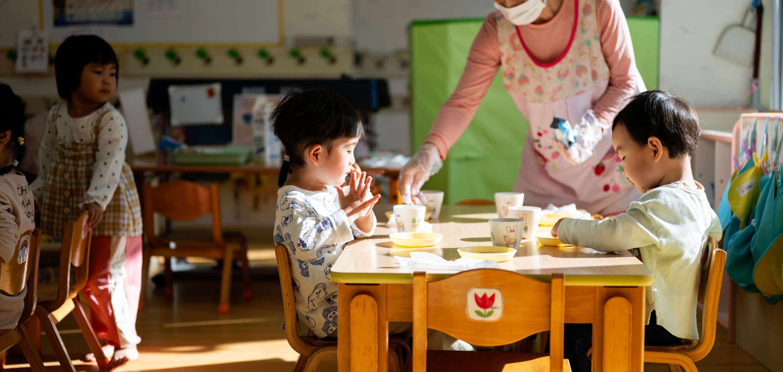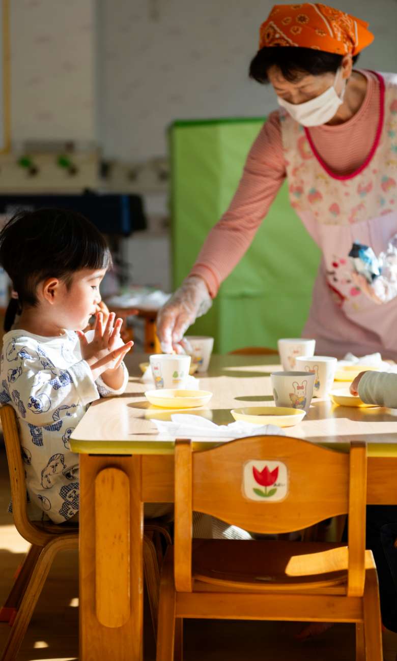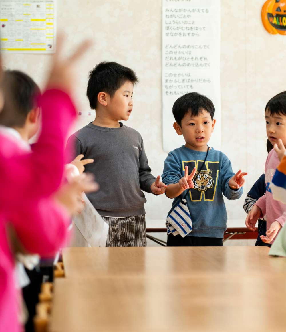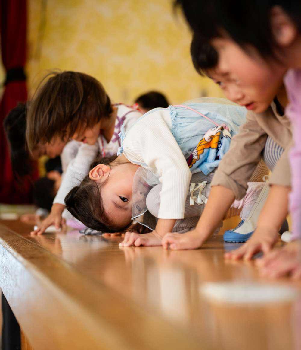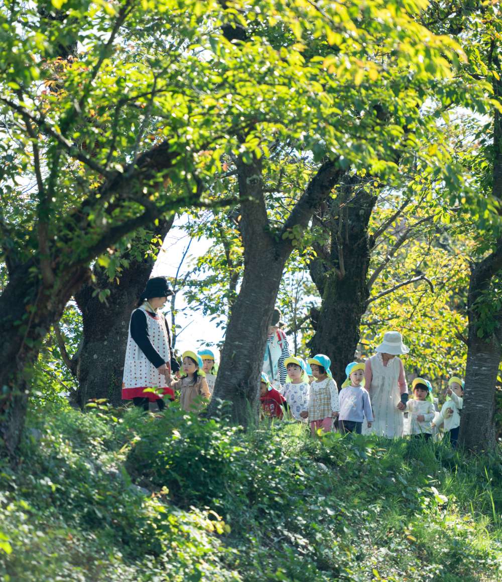 自然あふれる環境の中で、異年齢児保育を通して育まれる心と体は、未来へとつながっていきます。私たちは、子どもたちの「今」に寄り添いながら、そっと応援します。