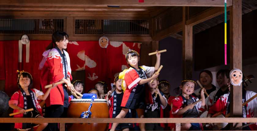 - 夏には勝山城、左義長祭り当日には地域の櫓で、左義長太鼓を披露しています。