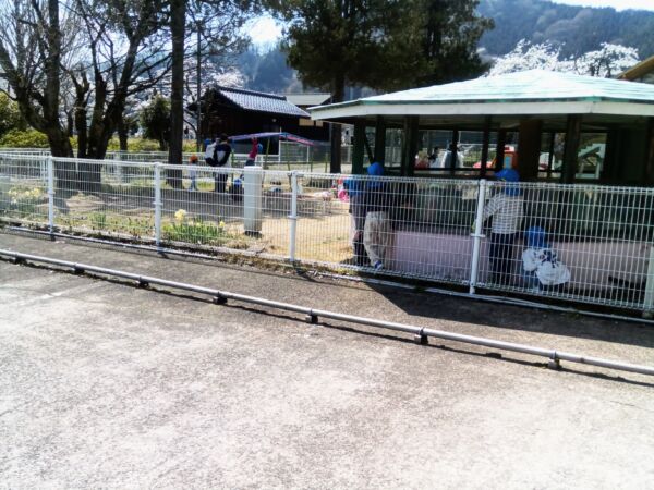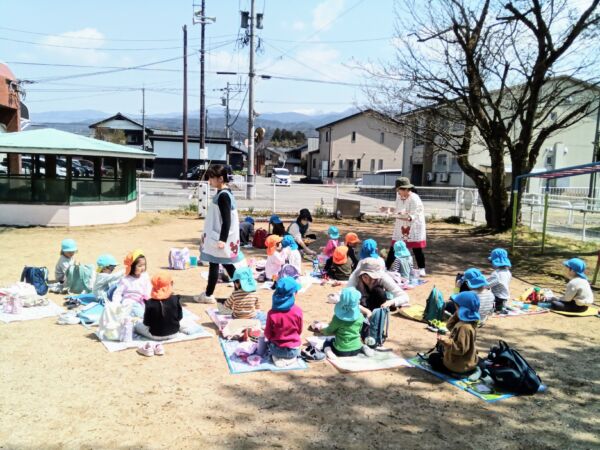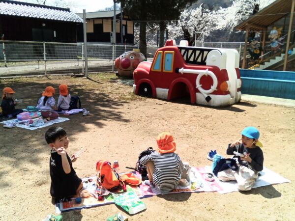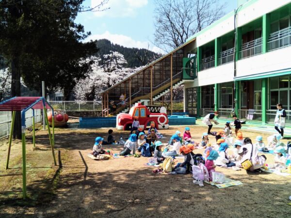 桜を見ながら食べる給食は、きっといつも以上においしかったでしょうね。