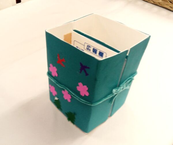 開くと中にメッセージがある手作りのペンスタンドです。