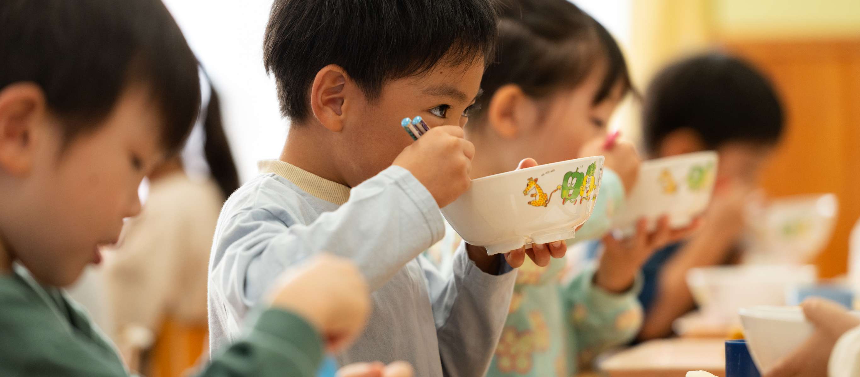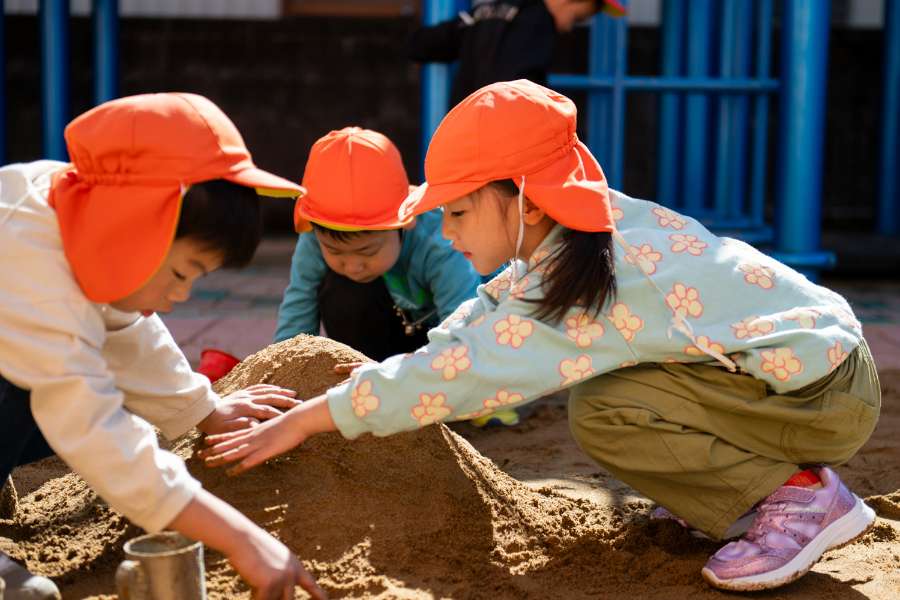 自発的な自己活動と友だちとの関わりが著しく発達します。そのため、異年齢児保育をもとにひとりひとりの発達に合わせた保育を行っています。自ら考え、選択し自己決定していく事で、主体的に生活や遊びを進める力を育みます。好奇心の芽を大切に育み、探求心や解決する力、挑戦する力を遊びや生活の中で培います。