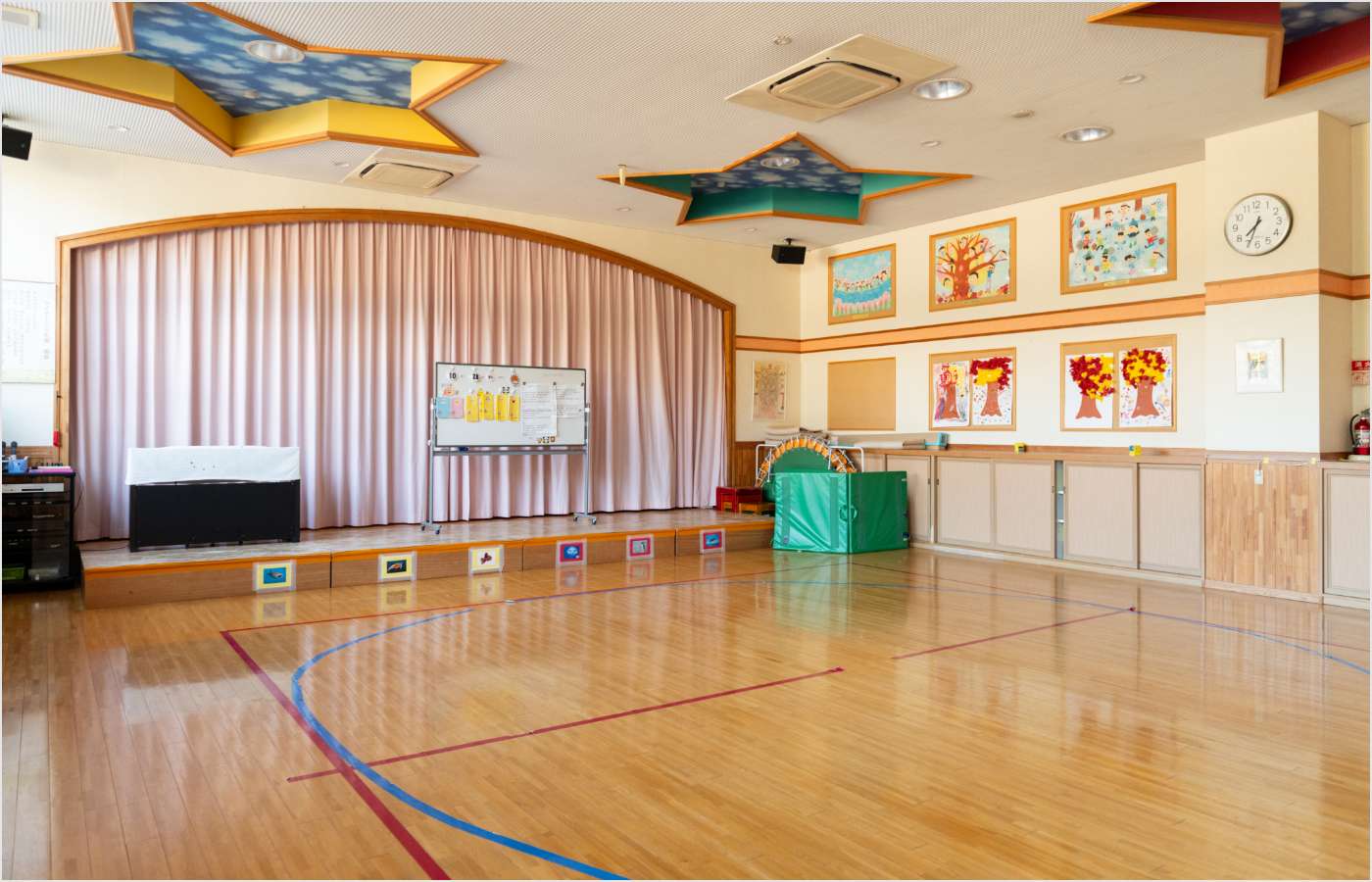 2Fホール発表会やお誕生祭などで使用します。3、4、5歳児はマラソンなど毎日体を動かす時間を設け、体力作りを行っています。