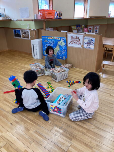 お部屋では、大好きなおもちゃでたっぷりと遊びました!!たくさん使えるので、大作が出来上がりました♪