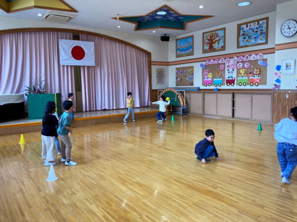 ホールでは、プヨプヨをしたり、ドッチボールを楽しみました。