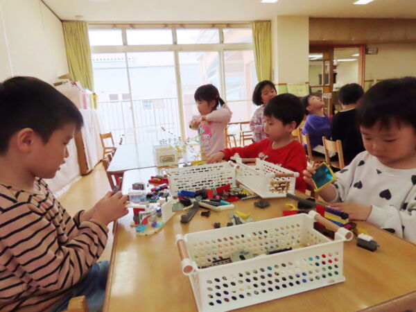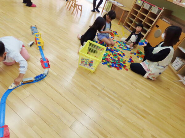 その後は選択活動をしました。ホール、遊びのお部屋、わくわくの部屋に分かれて、好きな遊びを見つけて過ごしていました。ぱんだ組さんもお兄さん、お姉さんと一緒に好きな遊びをゆったりと過ごしました。
