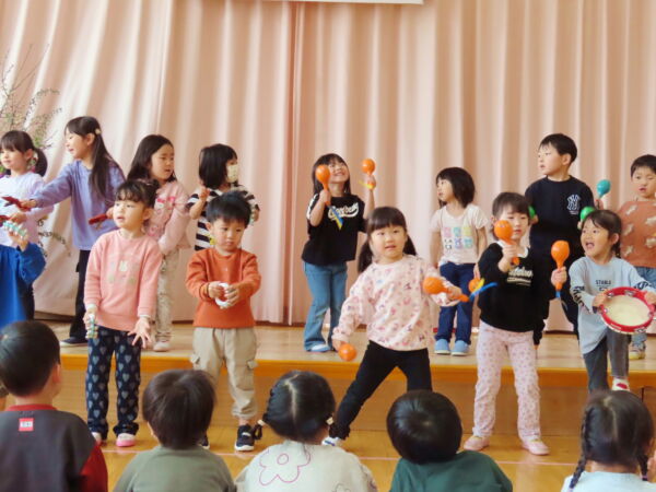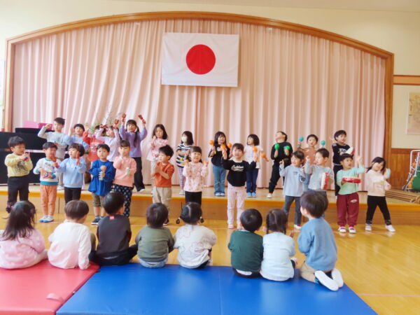 明日の入園式を楽しみにしています♪ 園日記 2026.04.02 明日はいよいよ入園式♪新入園のお友だちや途中入園のお友だちに向けての発表の最後の練習を行いました♪ ちょっぴり緊張している様子です。 決まったリズムを打ったり、フリースタイルでノリノリ踊ったり♪ 明日は「ケイテーこども園に来てくれてありがとう!」の気持ちを込めて、子ども達も職員もみんなで入園のお祝いをしたいと思います!