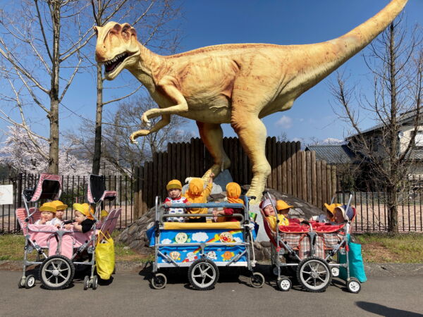 桜並木へ向かう前に、恐竜さんと♪カメラよりも、恐竜さんに夢中!