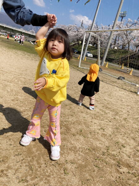 撮影の後は、グラウンドでかけっこをしたり、歩行を楽しんだりと、のびのび遊びました!