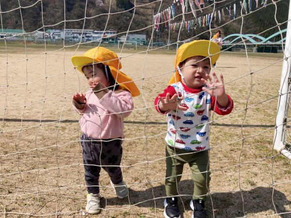 サッカーゴールも子どもたちにとっては何に使うものなの?このネットは何なの?と、興味津々に観察しています。