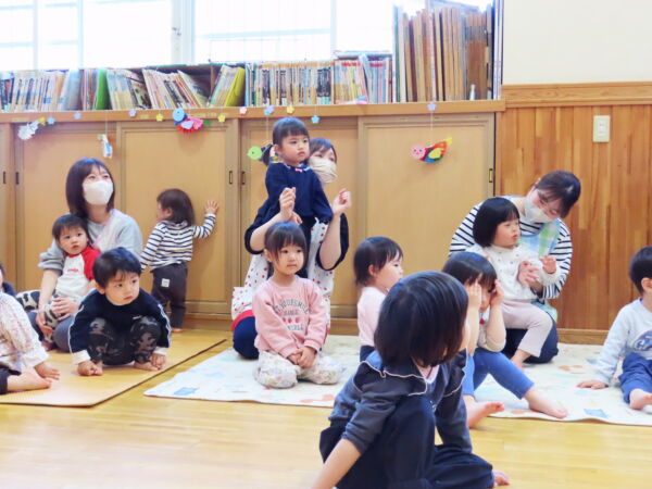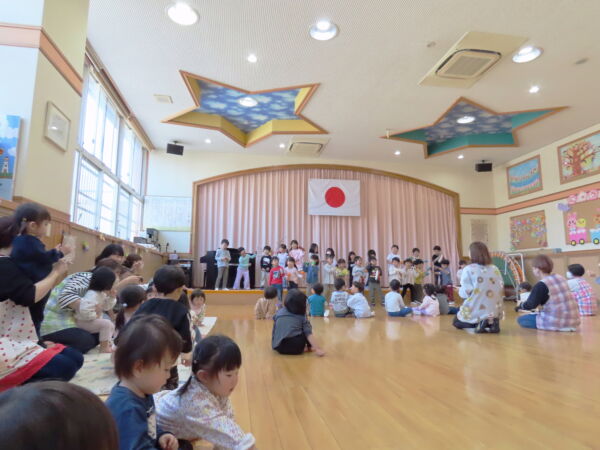 各クラスのお友だちがお歌に合わせて元気にお返事をしてくれました。