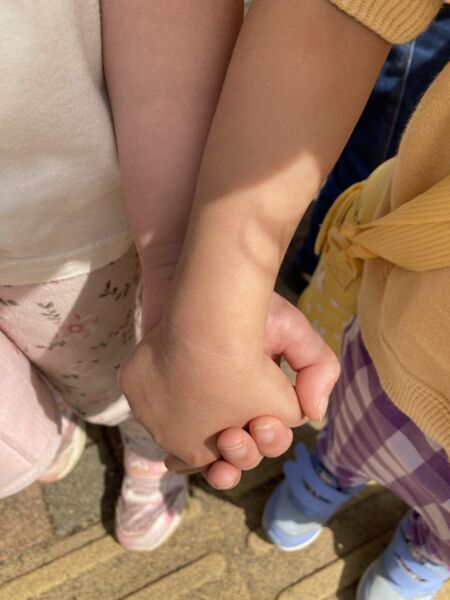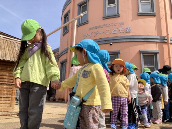 きりん組さんは、きりん組同士で手をつなぎます。らいおん組・ぱんだ組さんの後ろを歩いて、見守り隊をしてくれます♪