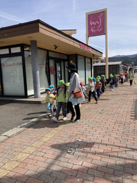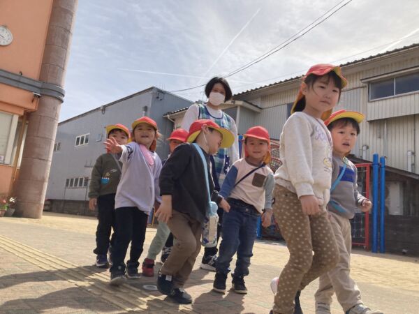 ぱんだ組さんはらいおん組さんと手をつないで、弁天へお花見に出発しました。