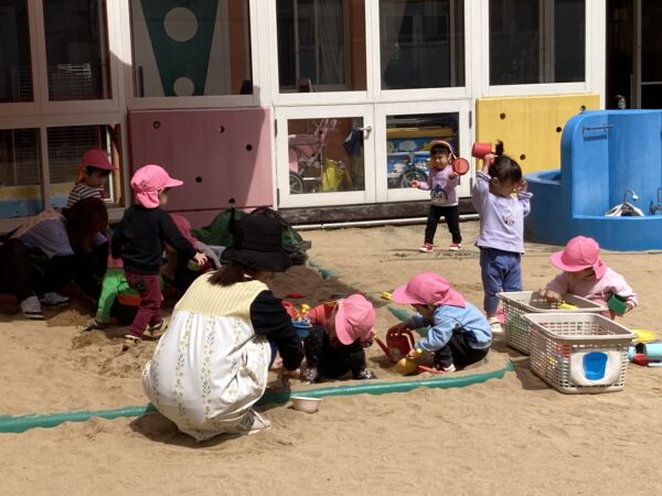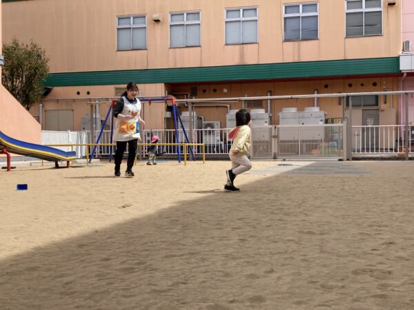 りす組に進級後、天気の良い日には園庭で遊んでいます。