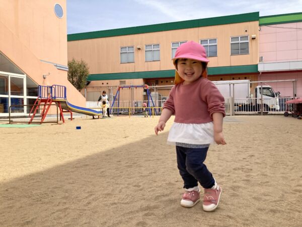 広い園庭でかけっこ!!「先生、来てー!!」「待て待て~♪」