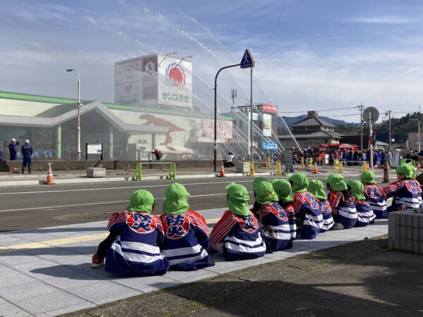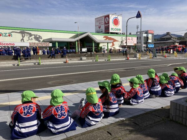 らいおん組さんは園内で行う避難訓練だけではなく、ヘリコプターを使った救助訓練や一斉放水の迫力を見て、訓練の大切さを感じたようでした。
