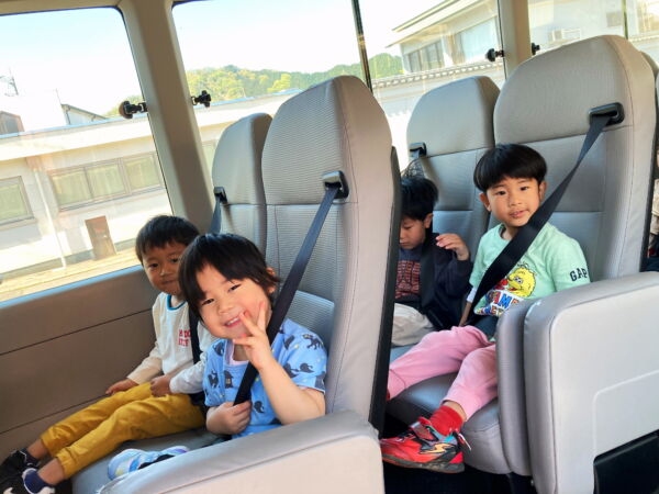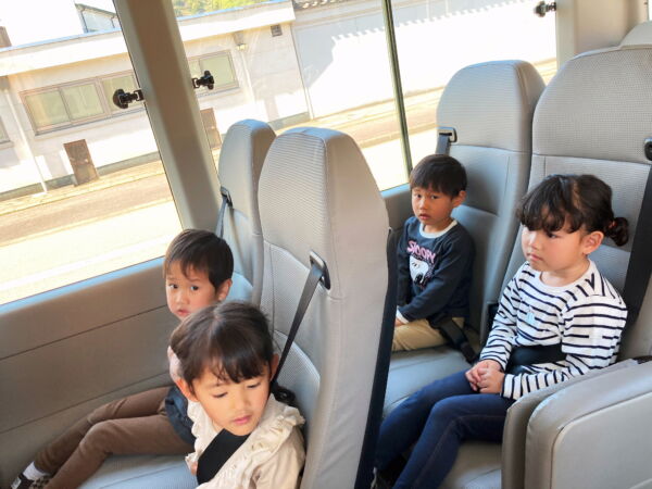 バスもシートベルトをして座っているよ。ワクワクするね♪