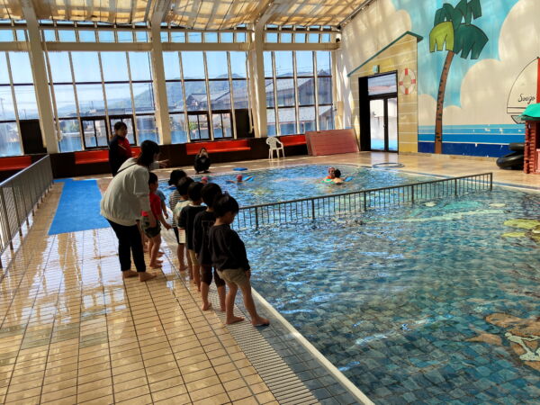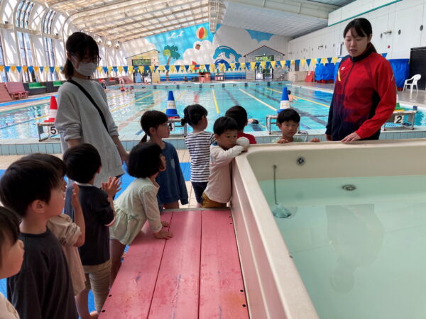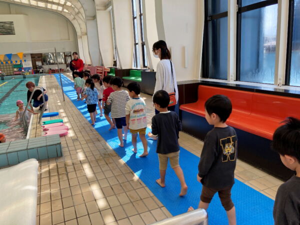 また、実際に入水する際には、緊張したり、不安に感じる子もいるかもしれません。子どもたちの様子に合わせて保育教諭が、安全に見守りながら、楽しんで参加できるようサポートしていきたいと思います。