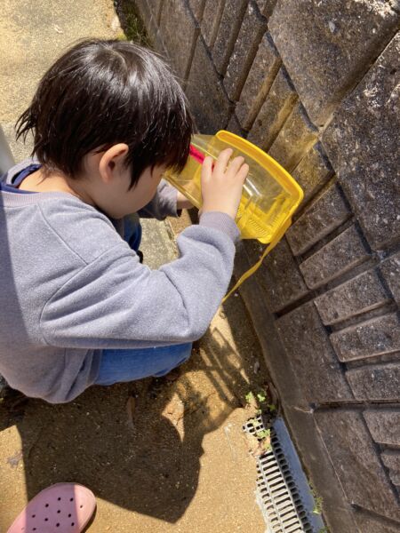 生き物との出会いの中で触れ合い方、関わり方を経験することで学びながら、外遊びを楽しみたいと思います。